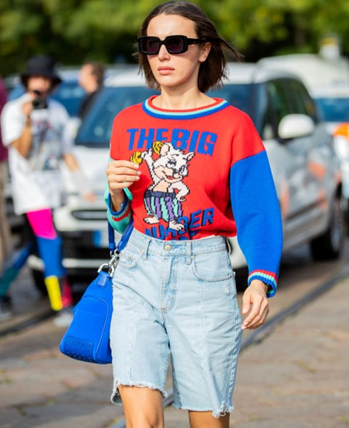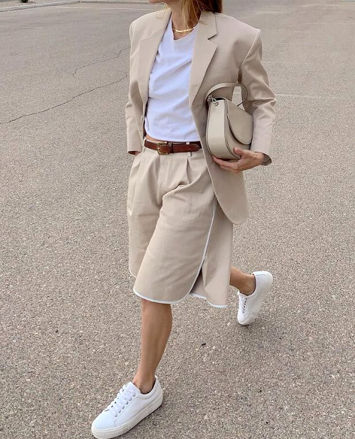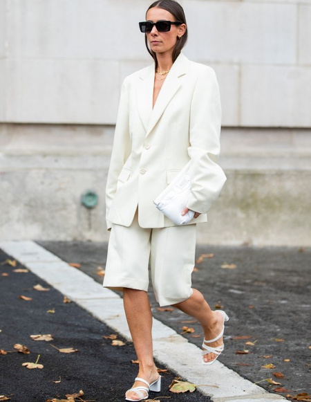 2021. À force de persévérance discrète, le bermuda s'est peu à peu imposé comme un néo-classique. De préférence large, il se porte aussi bien avec une paire de sandales à talons qu'avec des baskets massives. Plus pratique que les jupes de même longueur et plus démocratique que le short, il brille par sa capacité à s'adapter à de nombreux styles (voir ici, ici, ici et là).