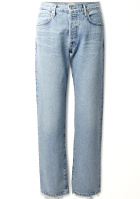 On pourra remplacer le jean par un modèle moins onéreux (Zara). L'idée est ici de télescoper des pièces au style marqué, afin de gommer leur potentiel premier degré. Le blouson sportswear patinera ainsi la dégaine forties du top, tandis que le jean large au tombé nonchalant atténuera la dimension girly des ballerines. Les barrettes se clipseront sur le même côté de la tête et accompagneront une queue de cheval haute.