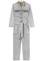Les jambes et les manches de la combinaison se roulotteront légèrement. On s'amusera à doper son chignon haut en l'entourant du chouchou en velours. Le sac pochette se portera au travers du buste. La combinaison gagnera à être portée non ceinturée et le col relevé.