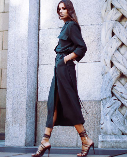 Sublimer la féminité d'une sobre jupe fluide midi noire en la faisant contraster avec une chemise masculine teinte safari (voir ici). Apaiser le mix jean/bottes pointues en vinyle froncé en se lovant dans un blazer en drap de laine un brin trop grand (voir ici). Faire de la robe chemise translucide la meilleure amie de ses bikinis (voir ici). Associer motif marron et pièce réglisse (voir ici). Choisir une paire de lunettes rondes à angles afin de twister subtilement un duo de pièces bleu marine (voir ici). Réhausser la dégaine de ses trenchs au contact d'une paire lunettes cat eye et de quelques bracelets dorés (voir ici). Insufller féminité et élégance au trio veste army/tee-shirt/jean droit 7/8 en chaussant une paire de mules kitten heels (voir ici). Oser les détails audacieux en travaillant l'ensemble de la tenue dans une teinte classique (voir ici). Télescoper robe chemise longueur mi-mollet et fines sandales à talons et lacets (voir ici). Décliner le concept du total look noir en toutes circonstances (voir ici, ici, ici, ici et là). User et abuser du mix jean droit court sur la cheville/sandales hautes perchées (voir ici).