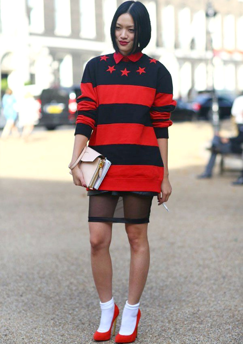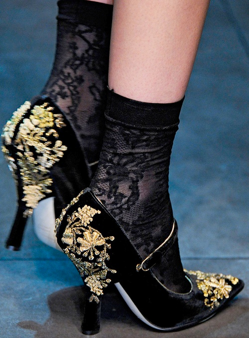 Je trouve que l'association chaussettes/escarpins peut être sympa mais uniquement dans les pages de magazine ou aux alentours des FW. Dans la vraie vie, ça a toujours un petit côté ridicule je trouve.