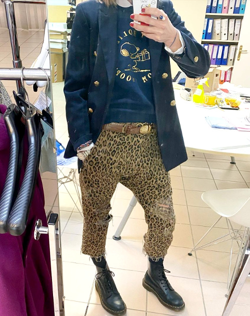 J'aime particulièrement sa façon de faire d'un pantalon léopard et de t-shirts amusants des vrais basiques et pas de pièces à porter avec du neutre.