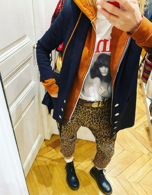 je ne connaissais pas, je suis assez peu sensible à son style, en revanche j'aime l'idée qu'elle porte certaines pièces souvent, ou en tous cas qu'elles reviennent dans ses photos (jupe courte un peu mordorée, paraboots, pantalon léopard...)