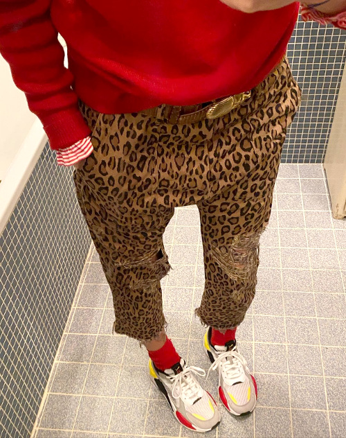 Le pantalon léopard, déchiré et avec une coupe indéfinissable... Brrrr froid dans le dos ! Ahah
