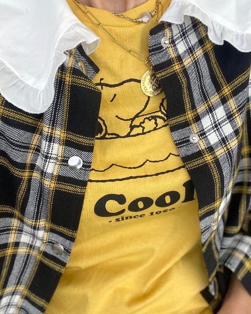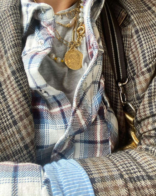 Je pense qu'il y a plein de façons de garder une part d'enfance dans son look, ça peut être des mélanges d'imprimés, du color block, des cheveux colorés, pas forcément des kilts et des soquettes.