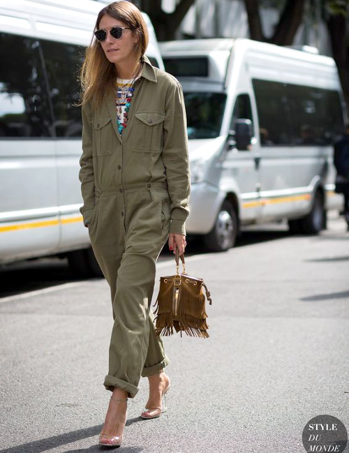 M.C. Overalls (voir ici). Monse (voir ici). Bellerose (voir ). Alex Mill (voir ici). Quelques combinaisons vintages (voir ici, ici et là).