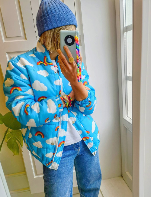Mais si quelqu'un a une veste cool, ça reste une veste cool, même si c'est une pièce super forte. Je pense que si t'en as 3-4 et tu fais péter l'arc-en-ciel brodé 1-2 x par tranche de 10 jours selon la météo, ça peut fonctionner. D'ailleurs c'est sympa, ça donne un petit côté "évènementiel" à la météo. Il pleut je fais péter mon trench ciré rose, etc. (je n'ai pas de trench ciré rose, par contre, je ne trouve pas la perle rare et c'est dur de juger la qualité du truc sur Vinted).