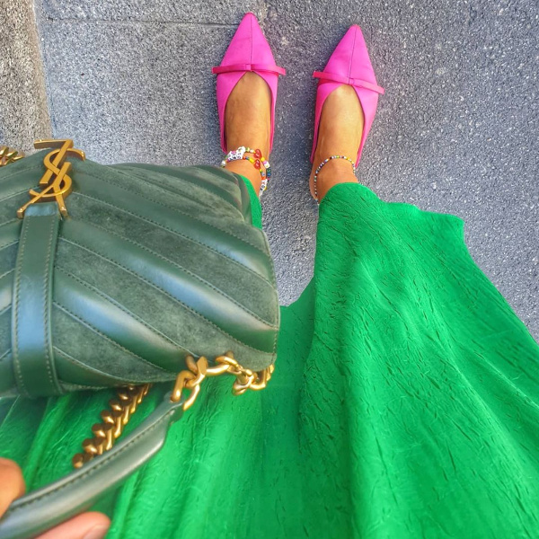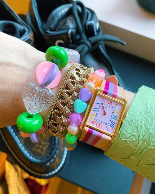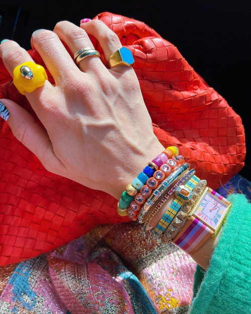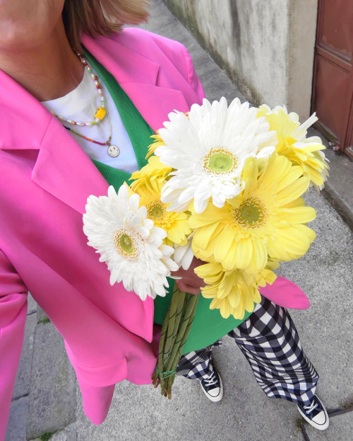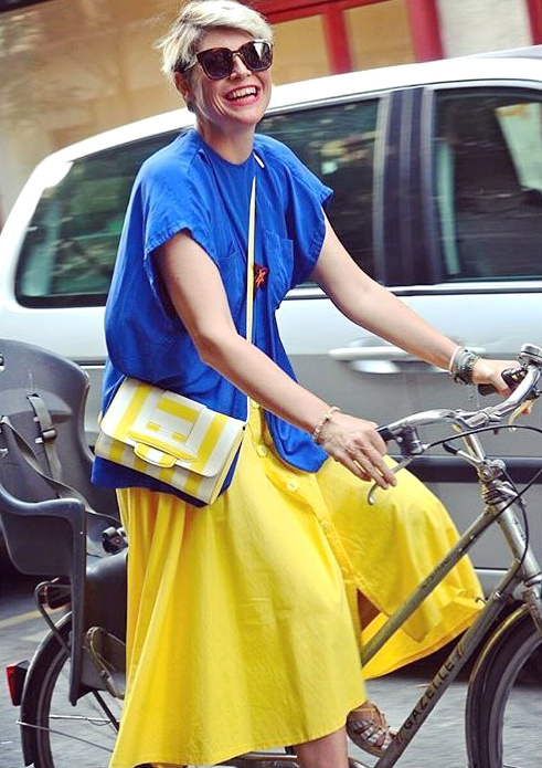 Se glisser dans une ample jupe colorée munie de poches afin d'allier confort, féminité et décontraction (voir ici et là). Investir dans un pantalon rose (voir ici et là). Oser les imprimés régressifs sur une pièce casual (voir ici). Troquer ses tubes de vitamine C effervescente contre une paire d'escarpins à carreaux orangés (voir ici). Miser sur les all-over d'imprimés (voir ici). Echanger sa boîte de Xanax contre une pièce rose stabilo (voir ici). Associer veste en jean (ou chemise en denim) à du jaune bouton d'or (voir ici). Traiter son poignet comme un étal de confiseur (voir ici et là). Choisir ses basiques dans des teintes de caractère afin de pouvoir facilement se composer des tenues impactantes (voir ici). Faire cohabiter violet, rose et camel (voir ici).