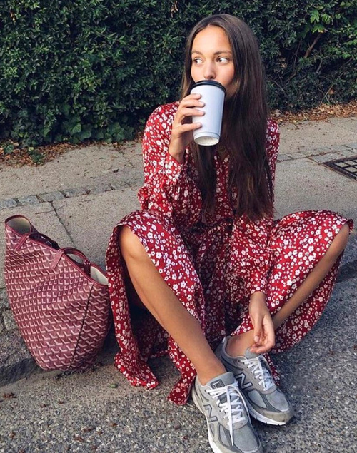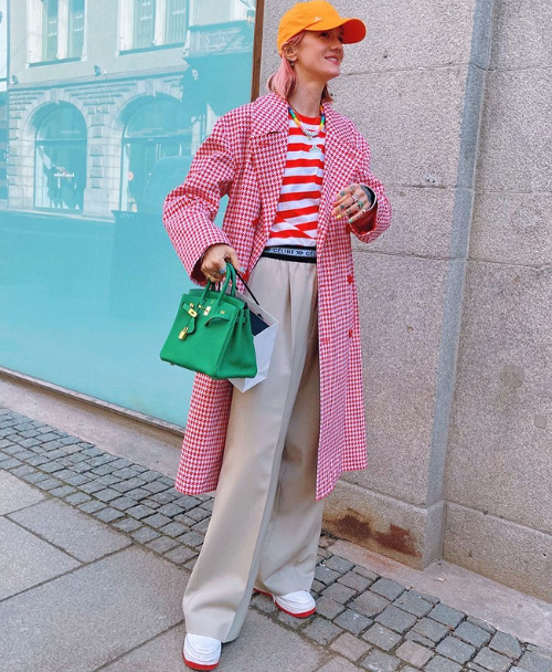 Marier robe longue fleurie et confortables baskets (voir ici et là). Bouder le pardessus camel au profit d'un cousin vert gazon (voir ici). Enfiler une paire de chaussettes contrastant franchement avec le reste de sa tenue (voir ici). Opter pour un sac à main non monochrome (voir ici). Se prendre régulièrement pour un oiseau des villes (voir ici). Mixer casquette de baseball et blazer vichy afin d'aller déguster des frites (voir ici). Faire une folie dont nous sommes la seule à comprendre l'absolue nécessité (voir ici). Chausser tous les week-ends une paire de patins à roulettes (voir ici). Associer pull fantaisie et jupe midi plissée (voir ici). Oser arborer des lunettes de soleil dignes d'une héroïne de cartoon (voir ici).