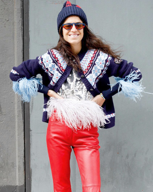 J'adore certains de ces mix de couleurs, mais de la team Man Repeller je trouve que c'est Harling Ross, plutôt que Leandra, qui est la spécialiste du joyeux / régressif, et des mix d'imprimés et de couleurs.