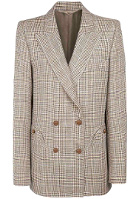 On portera le blazer ouvert. On fera dépasser les poignets de la robe. On pourra adopter une queue de cheval haute légèrement bombée sur le haut. On réglera la sangle du sac afin de le porter bien bas.