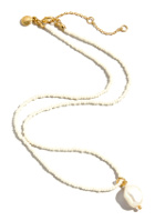 Le sac se portera au travers du buste. On associera le bracelet blanc à d'autres bracelets dorés. On ajoutera au look un très fin collier doré.