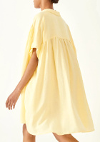 La teinte du sac permettra d'apporter un twist graphique à cette silhouette boho. La robe se déboutonnera sur le haut. Les baskets pourront être remplacées par des sandales de la teinte du chapeau.