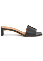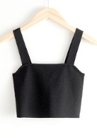 Le foulard se nouera en bandeau sur un chignon haut. Les mules et le top cropped permettront de faire respirer ce total look noir en dévoilant le maximum de peau. On pourra ajouter quelques bracelets dorés, blancs et rouges.