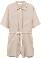 L'idée est ici de télescoper dégaine casual, imprimé girly et délicatesse un brin bourgeoise. Le combishort se portera non ceinturé et ouvert sur le marcel.