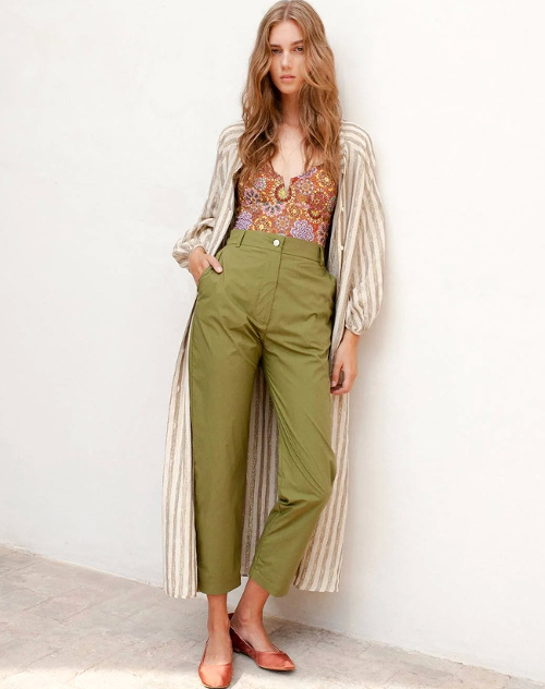 Télescoper à l'envi les imprimés de même teinte (Claudie Pierlot). Gérer son indice glycémique d'une main de maître en préférant de temps à autre les fleurs aux crèmes glacées (Claudie Pierlot). Insérer subtilement la tendance "crochet" au sein de son dress code (Claudie Pierlot). Faire la part belle aux sacs mêlant toile et cuir fauve (Roseanna). Se protéger du soleil no matter what ! (Claudie Pierlot) Marier vert d'eau tirant sur le vert sauge et fines rayures rouges sur fond blanc cassé (Claudie Pierlot). Se tailler un bob dans une vieille toile de matelas rayé (Business & Pleasure Co.). Sortir de l'anonymat ses tee-shirts en y brodant un signe discret et coloré (Business & Pleasure Co.). Dénicher un pendentif pouvant accueillir des micro souvenirs de vacances (mini coquillages, dent perdue par le petit dernier, galets liliputiens…) (Bohemian Rhapsodie - voir ici et là). Allier cuir et détails en bois ou en raphia (Balzac Paris). Oser les pièces faussement ringardes afin de les twister au contact d'un top minimaliste, d'une paire de sandales épurées, d'un bikini sensuel ou de pièces sportswear (Kowtow). Investir dans un maillot une pièce de caractère de manière à pouvoir facilement le porter en body (Momoni, ). Booster ses chemises et autres tops blancs au contact d'un bracelet violet doucement régressif (AYM Studio).