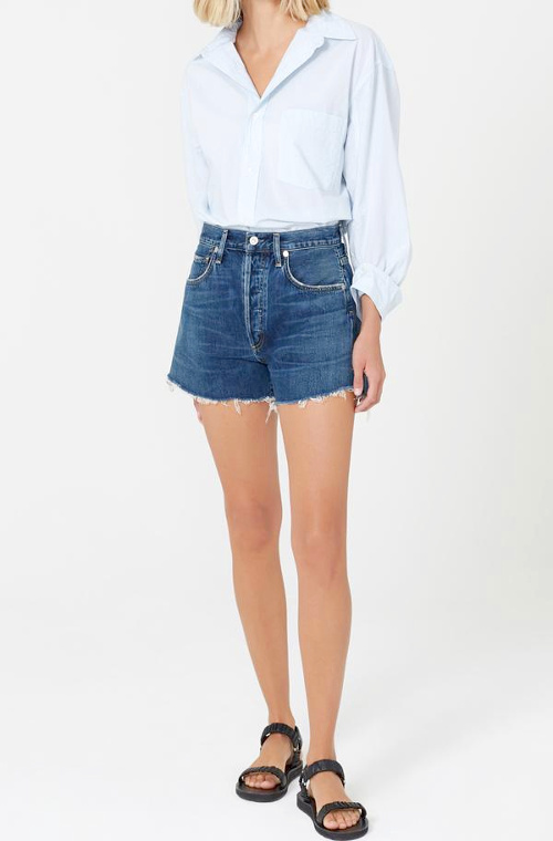 Alors jeune fille au pair en Pennsylvanie, je tombe amoureuse de l'enseigne Urban Outfitters, de ses gadgets branchés, sacs folks et autres tee-shirts à la patine vintage. Je m'arrange ainsi toujours pour faire un détour par leur boutique lors des virées shopping des jumelles dont j'ai la charge. Ce jour-là, c'est une pile de shorts en jean Levi's 501 qui attire mon attention. J'en essaie plusieurs modèles. Si ce que je vois dans le miroir ne me plaît pas (commencer une période de boulimie au pays de la malbouffe n'était pas franchement judicieux...), le short répond quant à lui à toutes mes exigences esthétiques. Je garde l'idée pour plus tard...