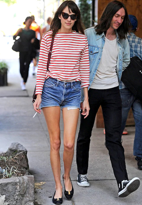 * Ballerines + marinière rouge (ou chemise à petits carreaux)