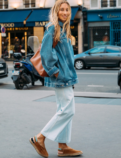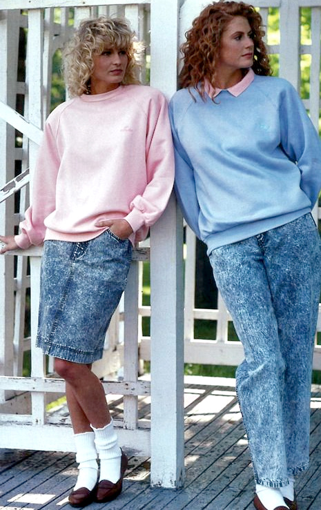 Années 80 : Les pièces en jean se déclinent en duo sans vraiment prêter attention à leurs teintes respectives (voir ici). 2021 : Le total look denim est devenu un classique que l'on travaille en optant pour des nuances de jean différentes (voir ici).
