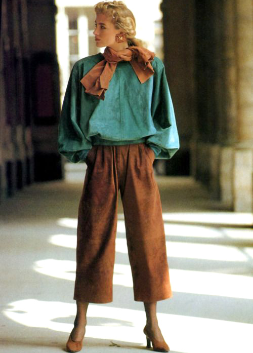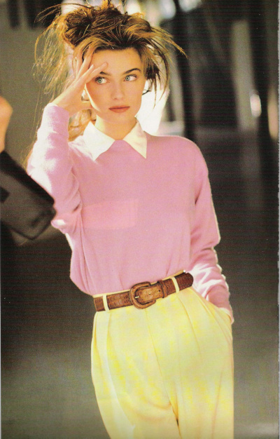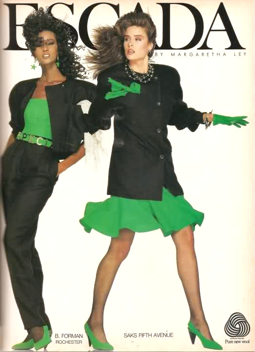 J'avais 17 ans en 1980 , je me souviens ne pas me reconnaitre à l'époque dans les magazines que je dévorait tout de même car unique source de photos de mode , de tendances et de haute couture . Notre inspi était plutôt punk - new wave qui n'avait pas droit de citer dans Elle et surtout nos références venues de la scène musicale anglaise , on tentait de s'approprier leurs tenues via les fripes ou des trucs hyper pointu ( qui se souvient de Serge Kruger en mode ? j'ai perdu le nom de son fuseau de la mort en matière faux cuir latex ? ), les pages que tu montres étaient commerciales et ringardes pour nous , mais les tendances infusaient pour déteindre l'une sur l'autre ( même si le street style n'existait pas ).
