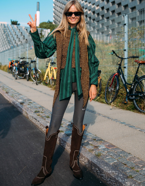 Années 80 : Vert et marron se travaillent en duo à coups de pièces en daim et de bijoux fantaisie (Vogue 1989). 2021 : Si ces couleurs se mixent toujours, le style classique bourgeois se voit délaissé au profit de looks plus conceptuels (voir ici).