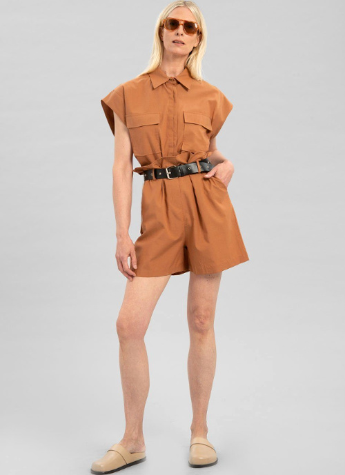 Années 80 : Le total look noisette opte ici pour une dégaine BCBG/safari en faisant la part belle à des bijoux bourgeois de tonalité savane, à un foulard imprimé animalier et à de fines baskets (voir ici). 2021 : Si les volumes restent presque identiques, l'accessoirisation se fait beaucoup plus minimaliste (voir ici).