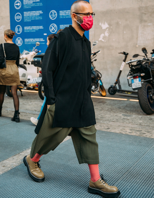 Ton pull court grand col V sur l'arrière tu basculeras (voir ici). À assortir ta combinaison de garagiste à tes bijoux les plus clinquants tu n'hésiteras pas (Giovanna Battaglia). En accompagnant tes robes fendues d'un épais pull-over d'un rhume carabiné tu te préserveras (voir ici). Haut sur le mollet tes chaussettes tu porteras (voir ici et là). De peur de les voir subtilisés par ton compagnon/mari/frère/père, tes jupes et talons sous clef tu mettras (voir ici, ici et là). Sur un blazer bien coupé l'imprimé léopard tu plébisciteras (voir ici). Tes habitudes stylistiques acquises lors des derniers confinements à assumer tu continueras (ou pas) (voir ici). En tant que tops à part entière les soutien-gorges et autres brassières tu traiteras (ou pas) (voir ici et là). Les tartelettes rustiques aux figues et aux mirabelles de Marine Gora d'aller goûter tu te dépêcheras. À enlever ton masque en extérieur tu penseras (voir ici). Au gimmick du caleçon apparent tu résisteras (voir ici). De l'aura potentiellement mémérisante du duo mocassins/jupe midi tu te moqueras (voir ici). D'une paire de bottes dignes de celles du jardinier de tes parents tes mini robes girly tu accompagneras (voir ici). Au pull noué sur les épaules un nouveau dress code tu appliqueras (Isabel Marant).