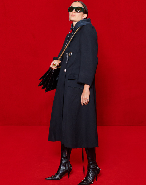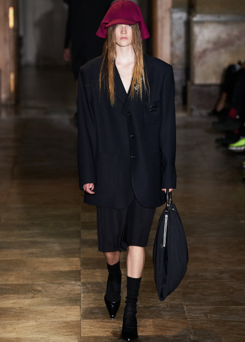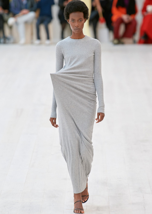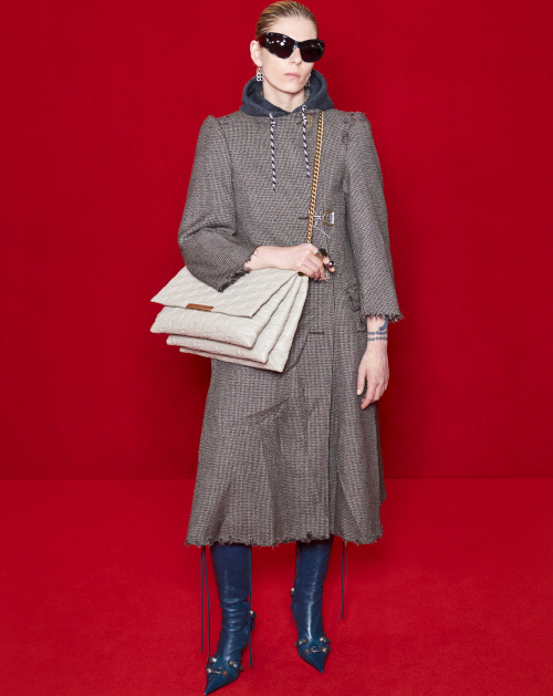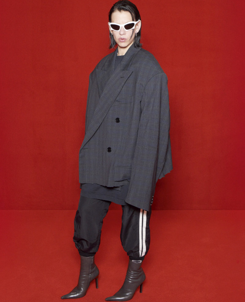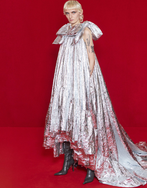 Demna Gvasalia sait comment divertir le petit monde de la mode : cette saison, pas de mise en scène divisant mannequins et invités, mais un tapis rouge menant à une projection privée d'un épisode exclusif des Simpsons et accueillant pêle-mêle invités et professionnels de la pose. Bien que donnant l'impression d'avoir été taillé dans un rouleau de papier aluminium, le tombé en multiples godets de cette robe argentée n'en reste pas moins fou. On espère que la styliste de Lucy Boynton a posé une option sur cette toilette... S'il s'avèrent peu flatteurs, les volumes de cette toilette nous permettent néanmoins de constater que clin d'oeil sportswear et pièce rétro chic font plutôt bon ménage. Le total look maille se décline en mode oversize en prévision d'un potentiel reconfinement et des kilos superflus qui vont fatalement avec… (voir ici) Un port altier peut transcender n'importe quel look. La preuve par l'image. L'absence de finitions de certaines pièces de la collection incitent à porter tels quels les ouvrages non terminés prenant la poussière près de notre machine à coudre (voir ici). Le gimmick consistant à glisser son bas de jogging dans une paire de bottines moulantes risquent malheureusement de se voir repris… (voir ici) Les écologistes saluent la générosité d'Isabelle Huppert qui, grâce à son apparition glaciale, fit instantanément baisser de quelques degrés la température mondiale (voir ici). Qu'on le veuille ou non, les chaussures pointues à talons aiguilles sont sur le point de faire leur grand retour (voir ici).