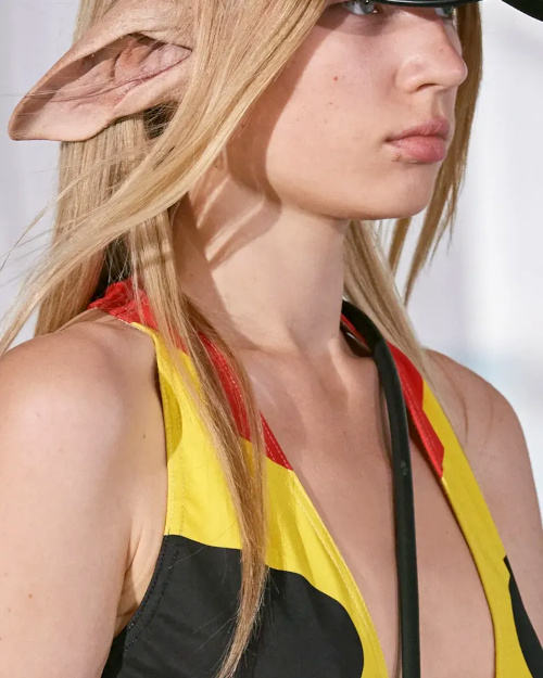 Désireux d'abolir les frontières entre fantasmes et réalité, Riccardo Tisci transforme ses mannequins en êtres hybrides mi-femmes/mi-animaux via une paire d'oreilles de biche en latex (voir ici et là). Insolite (voire étrange), ce parti pris esthétique a le mérite de détourner l'attention d'une collection manquant de créativité.