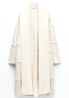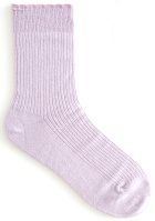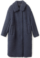 Le jean se roulottera légèrement sur la cheville. On pourra troquer l'écharpe violette contre une plus volumineuse afin d'accentuer le contraste maille cosy/manteau légèrement sévère. Les chaussettes se fronceront sur la cheville. On optera pour une coiffure dégageant le cou et le visage.