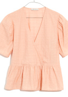La blouse se glissera sur le devant du jean. On portera le sac au travers du buste. On pourra remplacer le duo d'oranges par un duo de roses ou de rouges.