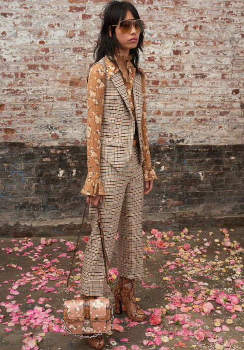 Coudre de discrets passants au niveau de la taille de ses robes monochromes afin de pouvoir y glisser une longue ceinture - en cuir ou en tissu - et créer ainsi un effet "corset" (voir ici). Aérer le trio veston/pantalon coordonné/chemise seventies en optant pour une version 7/8 du pantalon (voir ici). Insuffler une bonne dose de caractère à la mini robe fleurie en lui mariant un blazer sans manches à carreaux (voir ici). Ne pas hésiter à mixer kaki et argenté (voir ici). Célébrer régulièrement les Tenenbaum en associant pardessus camel et ensemble de jogging rouge (voir ici et là). Se permettre d'associer des imprimés a priori peu compatibles en les choisissant dans une même gamme de teintes (voir ici et là). Porter ses robes midi en mousseline - et ses jupes glitter - accompagnées d'un long pull un brin épais (voir ici et là). En été, penser à télescoper les imprimés fleuris de différentes tailles (voir ici). Contrebalancer la dimension hippisante du tie and dye en lui mariant une pièce tailoring (voir ici). Associer grège, gris clair, blanc et marron (voir ici). Choisir ses pièces les plus sexy taillées au sein de matières masculines (ici une jupe portefeuille fendue).