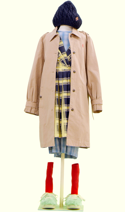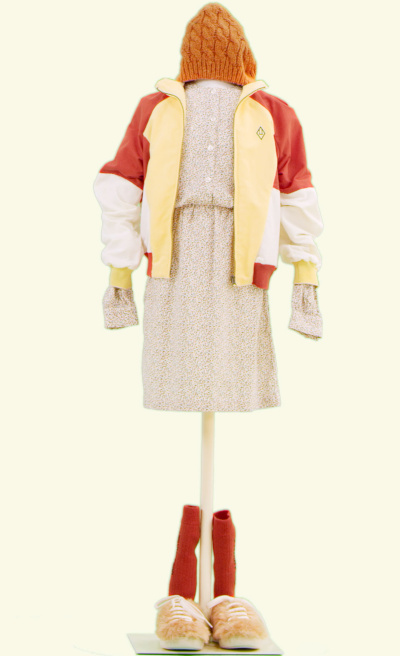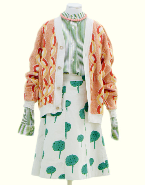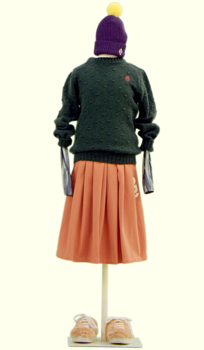 La tenue fille , jupe imprimée , pull improbable , collier rose sur rayures vertes .....le vraie look des arts déco à 18 ans ;-)