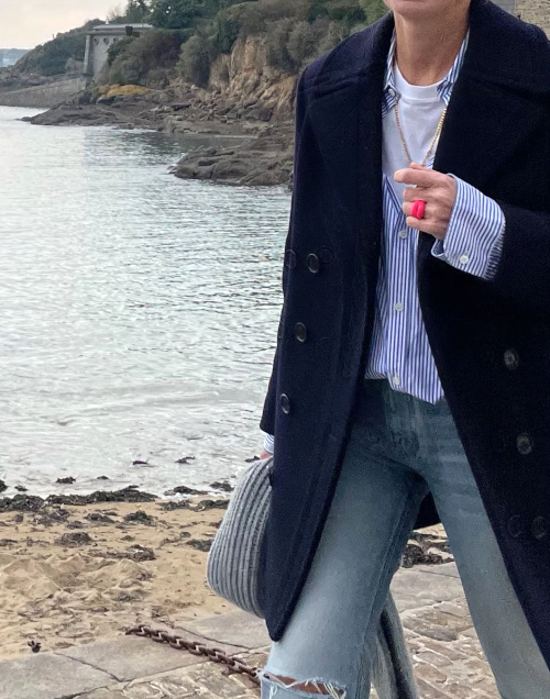 Dégager la cheville et dévoiler le maximum du pied afin d'équilibrer les looks monochromes très couvrants (voir ici). Acérer la dégaine d'un duffle-coat camel preppy/classique au contact d'une chemise masculine à rayures verticales (voir ici). Décliner sobrement - mais efficacement - le style seventies en privilégiant le trio lunettes aviateur/pull col roulé/blazer (voir ici). User et abuser des camaïeux de kakis, et ce d'autant plus si l'on est blonde (voir ici). Téléscoper rayures sages et bijoux oversized (voir ici). Déjouer le sérieux de certaines tenues en misant sur des bijoux subtilement régressifs (voir ici). Réchauffer le total look jean (chemise/jean flare) au creux d'un long trench bistre, le tout agrémenté d'une paire de converses blanches (voir ici). Miser sur un manteau à la texture étonnante afin de réveiller un look sans histoire (voir ici et là). Marier marron, fauve et lilas (voir ici). Ne pas hésiter à consolider l'allure d'un blazer en lui ajoutant des coudières (voir ici). Réveiller une tenue à dominante bleue en y insérant une touche de rose fluo (voir ici). Déjouer le potentiel "no look " du duo short/chemise en le déclinant en total look noir (voir ici). Porter ses cols roulés déroulés (voir ici). Traiter son étui à AirPods comme un bijou à part entière (voir ici). En été, miser sur le total look kaki light à base de chemise utilitaire et de short ample et court, le tout finalisé par un long sautoir ou par un panier tressé (voir ici et là).