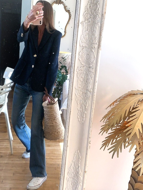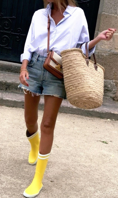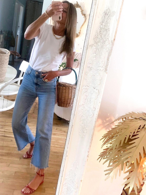 Réhausser la douceur beige d'un pelage de teddy bear en chaussant une paire de converses rouges montantes (voir ici). Télescoper chemise blanche masculine portée les manches roulottées et collier doré un brin épais (voir ici). Oser le blazer de couleur pour densifier la dégaine du duo jean boyfriend/baskets (voir ici). Avoir toujours à l'esprit que plus la tenue est épurée, plus le bijou peut être audacieux (voir ici). Préférer les chemises de banquier déclinées en rayures jaune pâle plutôt qu'en bleu "Gordon Gekko" (voir ici et là). Marier le chic unisexe de la chemise à plastron aux vibes seventies du jean flare (voir ici). Faire du tee-shirt un prétexte pour accumuler les bijoux (voir ici). Confronter la dimension boyish du trio blazer bleu marine/chemise en jean clair/jean boyfriend à la saveur estivale du cabas en raphia tressé (voir ici). Injecter du caractère à ses jeans blancs en leur associant une paire de boots marron à semelles crantées (bien plus subtiles que leurs homonymes carbones) (voir ici). Chiner une ceinture Hermès afin de booster l'aura de ses jeans taille haute (voir ici). Pimenter un look tailoring/minimaliste en chaussant une paire de sabots (voir ici). S'amuser à remplacer ses sandales par une paire de bottes de pluie au sein d'une tenue androgyne presque estivale (voir ici et là). Structurer une longue robe fluide en arborant un sac à main rigide porté en bandoulière (voir ici).