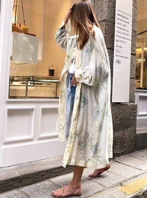 Féminiser le duo tee-shirt blanc/jean large 7/8 en enfilant de très fines sandales plates rouges (voir ici). Rendre désirable le total look blanc en lui mixant un tee-shirt à graphisme rock sur fond blanc et en lui adjoignant une touche de cuir marron (voir ici). Faire du chapeau en tissu un véritable exhausteur de look (voir ici). Faire de ses plus beaux kimonos des trenchs printaniers (voir ici). Porter ses blazers à même la peau (voir ici). Se servir de la dimension apaisante et classique du long pardessus camel pour apaiser un imprimé léopard (voir ici). Réchauffer un look casual printanier au creux d'un long manteau monacal sans manches (voir ici). Twister le minimalisme d'un bikini noir en optant pour une pochette graphique (voir ici). Transformer une robe légère entièrement boutonnée sur le devant en kimono de plage (voir ici). Rendre infiniment chic un pantalon large à pinces 7/8 en lui mariant blazer réglisse et sandales noires épurées à talons (voir ici). Equilibrer le volume d'un pantalon large 7/8 en lui mariant un blazer court et légèrement cintré (voir ici). Porter ses plus beaux pyjamas (soie + imprimé de caractère) comme un ensemble prêt-à-porter à part entière (voir ici). S'habiller de douceur afin de résister aux agressions du quotidien (voir ici).