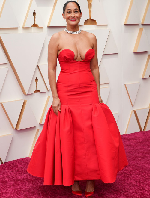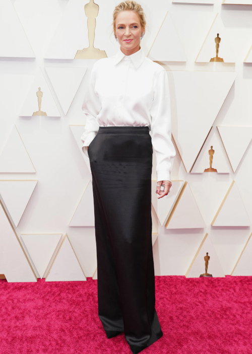 Certaines robes semblent avoir été conçues pour reproduire à l'envi le "Sophie Marceau gate" de 2005 (Tracee Ellis Ross en Carolina Herrera, Venus Williams en Elie Saab). Si sur le papier le concept du tie and dye de sequins semble particulièrement brillant, on regrette néanmoins que le décolleté de la robe Gucci de Jessica Chastain n'ait pas été mieux pensé. Il est vrai que le manque de finesse des bretelles et l'absence de structure des balconnets desservent l'allure générale de la robe. On salue l'indépendance d'esprit de Zendaya qui n'a pas sacrifié son confort à la tendance "décolleté inversé Miu Miu" en optant pour un top cropped cachant la naissance de ses seins (Valentino). Kirsten Dunst fit honneur à la cérémonie des Oscars en optant pour une robe pile dans le dress code tacite de la grande messe hollywoodienne, à savoir un modèle finement ringard, subtilement soporifique et globalement peu flatteur (Christian Lacroix Haute Couture). Si opter pour un fourreau écarlate peut sembler être un choix efficace et sans prise de risque, attention cependant à ne pas jeter son dévolu sur un modèle manquant d'envergure, à l'instar de cette pièce aux mini manches et au banal détail zippé guères à la hauteur des circonstances… (Jennifer Garner en Brandon Maxwell) Aussi impactant soit-il visuellement parlant, l'effet "bouillonné" ne suffit pas à masquer le manque de subtilité/fluidité/évidence des tenues de Caitriona Balfe en Louis Vuitton et de Nicole Kidman en Armani Privé. Kristen Stewart ne semble pas vouloir apprendre de ses erreurs et s'obstine à faire du short Chanel sa pièce forte de prédilection. Un simple coup d'oeil sur ses dernières apparitions chaneliennes (voir ici et là) aurait pourtant suffi à lui faire réaliser que le micro short enserrant la cuisse (au lieu de la laisser libre) n'est pas le parti pris stylistique le plus heureux… Gucci a apparemment décidé de se lancer dans la toile de tente haut de gamme… (Billie Eilish) Le style Audrey Hepburn sied particulièrement bien à l'actrice Zoë Kravitz (Saint Laurent). La frontière entre élégance intemporelle et style soporifique est apparemment très ténue… (Uma Thurman en Bottega Veneta)