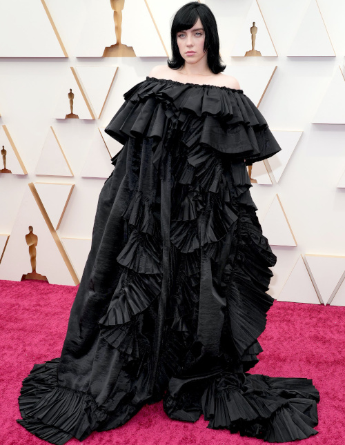 Comme l'a dit Balibulle dans son post Instagram, les robes étaient très couvrantes, pas de décolletés, manches longues... En lisant ton article je vois que les comédiens les plus jeunes se sont affranchi.es de tout code : Kirsten Stewart en short (alors que l'Académie est super stricte avec les femmes qui doivent porter robe longe et talons), Timothée Chalamet sans chemise, Zendaya en toute élégance mais avec une chemise cropped... Billie Eilish porte aussi une robe très couvrante mais elle s'habille toujours comme ça et revendique le fait de ne pas montrer son corps que quand elle en a envie (comme sa fameuse et magnifique couv' pour Vogue). Brèche générationnelle dans les codes du tapis rouge ? Bref mon commentaire n'est pas très intéressant mais j'ai comme l'impression que les acteurs et actrices plus agé.es ne s'amusent plus avec leurs vêtements, mais heureusement que la génération Euphoria nous montre comment jouer avec et détourner les codes !