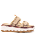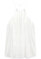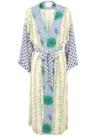 Le vert menthe du marcel permet de vivifier les teintes du kimono. Le marcel se glissera sur le devant du jean. On profitera des semelles compensées des sandales pour laisser au jean sa pleine longueur. L'energie casual du duo marcel/jean se voit ici twisté par un collier ras du cou de bonne facture. Le kimono se portera ouvert et ceinturé.