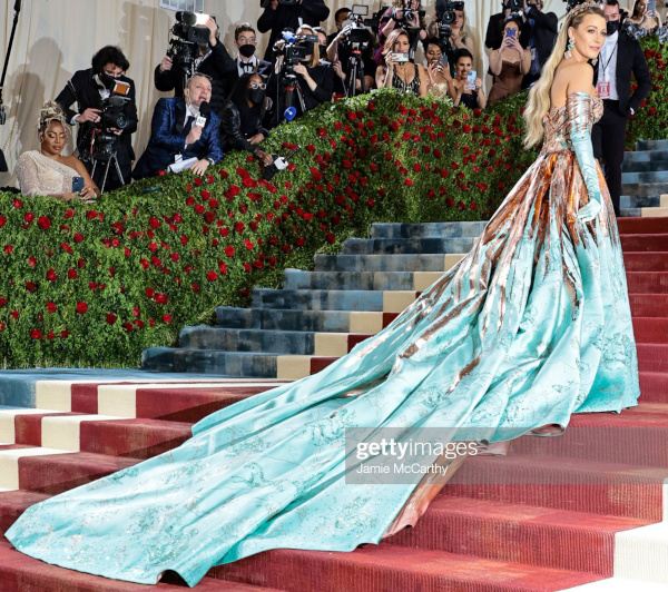 Il faut préciser que la robe de Blake Lively est un hommage rendu à Lady Liberty conçue à cette époque et le chargement de couleur est tout simplement celui que la statue de la liberté a subit à travers le temps.