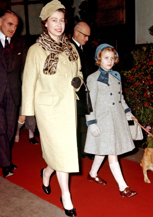 Accompagnée de sa petite soeur Margaret, la reine Élisabeth arbore une cape trench aux ouvertures pragmatiques.