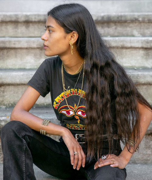 Chanteuse, mannequin, actrice, musicienne, scénariste, peintre et conceptrice de bijoux : Arpana Rayamajhi brille par l'expression multiple de sa créativité. Un foisonnement que l'on retrouve dans sa manière de se vêtir, où la préoccupation de "s'appartenir émotionnellement" - en mixant ses inspirations du moment - prime sur toute autre considération. Passage en revue de ce que l'on pourra emprunter au dress code de cette Népalaise établie à New York, fan de Björk, d'asanas et de vidéos de bébés animaux...