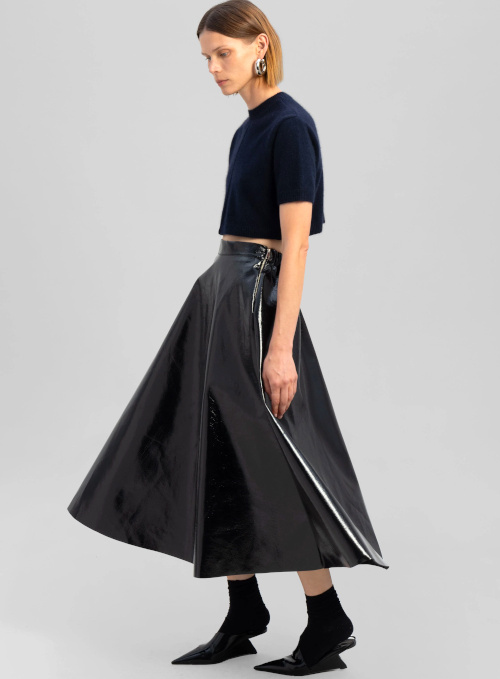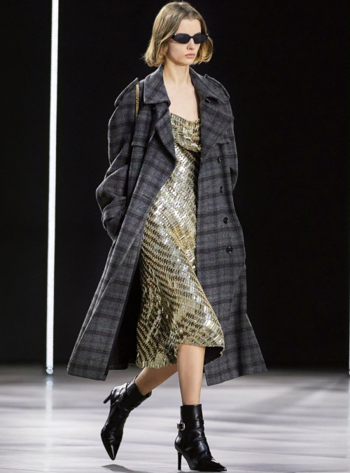 Associer veste courte et jean large taille haute (Sandro). Laisser dépasser le col de son polo sur un sweat ton sur ton (Sandro). Adoucir la casualness du pull camionneur au contact d'un col volanté (Sandro). Réchauffer une robe midi au creux d'un blazer oversize (Sandro). Marier jean droit un brin large 7/8, mocassins et blazer cintré (Sandro). Twister les rayures verticales en leur mixant un imprimé fleuri (voir ici et là - Sandro). Dérider l'aura masculine d'un blazer en drap de laine en lui épinglant au revers une broche esprit "vintage" (Sandro). Glisser un fin pull col roulé sous ses chemises (The Row). Travailler en trio veste en shearling, casquette en tweed et jupe courte plissée (Maje). Associer une jupe corolle taille haute et une longueur mi-mollet à un pull à peine cropped (The Frankie Shop). Patiner le premier degré sexy d'une mini-jupe en y glissant une chemise XXL (The Frankie Shop). Urbaniser le pantalon cargo en le portant avec un pull fin col roulé (The Frankie Shop). Travailler sur la même tenue vieux rose, rose malabar et bordeaux (Roseanna). Réhausser la teinte bordeaux en télescopant texture vernies et maille côtelée (Roseanna). Associer la douceur du vert d'eau au chic utilitaire du bleu marine (Roseanna). Porter ses jeans droit légèrement larges ceinturés taille semi-haute et les accompagner d'une paire de bottines à talons aiguilles et d'une veste courte esprit Chanel (Céline). Marier caban XL, jean étroit et bottes hautes à talons (Céline). Réchauffer ses robes les plus "soir" en enfilant un long trench mou taillé dans un réconfortant drap de laine (Céline). Glisser un tee-shirt blanc col rond sous ses pulls col V (Zara). Choisir ses pulls dotés de manches suffisamment longues pour dépasser généreusement de celles d'un blazer (Zara). Accompagner un pantalon large beige à pinces (esprit costume) du mix marcel blanc moulant/top moulant à rayures marinières (Zara). Mixer jean effiloché et escarpins pointus (voir ici). Apaiser une robe glitter dorée en chaussant une paire de bottes marrons (voir ici). Faire sortir des chaussettes hautes de bottes plates un peu larges (voir ici et là). Adoucir la dégaine d'un costume en optant pour une douillette écharpe XXL (COS). Glisser une paire de hautes chaussettes dans ses ballerines (Miu Miu). Réhausser un total look camel de touches de blanc (Officine Generale). Glisser un tee-shirt large joyeusement ringard dans une mini jupe en tweed (Stella Nova). Superposer les chemises de différentes épaisseurs (Sessun).