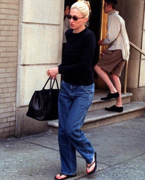 Considérer que plus un blouson en cuir est usé, plus il a de caractère (voir ici et là). Faire du marcel blanc un tee-shirt à part entière (voir ici). Réchauffer une slip dress par l'intermédiaire d'un fin gilet (1994). En 2022, on adjoint à ce duo une paire de boots masculines. Glisser un épais pull col roulé sous un blazer masculin (voir ici). Accompagner ses joggings en molleton d'un blazer en drap de laine (voir ici). En 2022, on troque les fines baskets contre une paire de , de ou de mocassins à semelles épaisses. Accumuler les couches sur le haut afin de pouvoir faire court et dénudé sur le bas (Miu Miu 1997). Structurer une ample combinaison-pantalon via une large ceinture portée taille haute (voir ici). Travailler en total look noir le mix pull moulant à manches courtes, jupe midi et kitten heels (Prada 1995). Faire dépasser les chaussettes de ses bottines (1994). Porter ses manteaux basculés vers l'arrière (Prada 1995). Transformer ses gilets oversize en cache-coeur (voir ici). Superposer veste type Barbour, long gilet fin et mini robe glitter (voir ici). En 2022, on troque le camaïeu de gris contre un camaïeu de kaki et on remplace les ballerines par une paire de bottes camarguaises et une paire de grosses chaussettes fronçant à la sortie des boots.