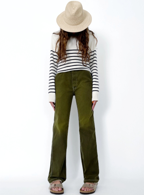 Créateur de la griffe Sultan Wash, Jeremy Sultan fut l'un des premiers - en 2007 - à s'intéresser à Tendances de Mode. Je me souviens de son phrasé chaleureux, de son enthousiasme communicatif et de sa passion pour les jeans vintages... Le denim qu'il m'avait fait choisir dans sa petite boutique reste encore aujourd'hui mon étalon en matière de toile de jean (au tout début du site je n'avais pas encore établi de règle de "non-acceptation de cadeaux des marques"). Bref, je garde une tendresse toute particulière pour ce créateur qui, en 15 ans, a beaucoup fait évoluer sa marque et qui met aujourd'hui à profit sa connaissance des vêtements utilitaires issus du passé pour en concevoir de nouveaux. J'aime tout particulièrement ce pantalon de travail US dont la teinture m'évoque la mousse humide des forêts de Sintra et qui me semble aussi résistant que facile à porter.