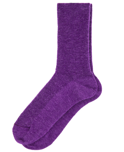 L'éclat de couleur provoqué par un accessoire inattendu mais subtil : tel est à mes yeux le "game changer" d'un look. C'est pourquoi je regarde avec beaucoup d'envie ces chaussettes violettes Roseanna. À la fois intense et duveteux, leur violet me semble en effet être le candidat idéal pour dérider un jean 7/8, twister un kaki ou encore égayer une paire de Birkenstock.