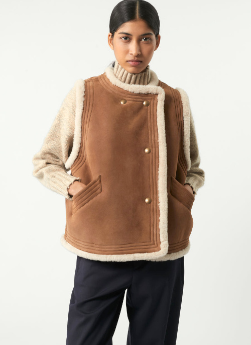 Si j'ai longtemps été réfractaire au concept de manteaux/vestes sans manches, j'ai constaté au fil des années que ceux-ci étaient de précieux alliés lorsque l'on est adepte du layering. Leur absence de manches leur permet en effet de créer d'intéressants contrastes avec celles du vêtement qu'ils réchauffent (K-way, chemise en jean, pull duveteux…). Sans parler du fait qu'ils s'avèrent idéaux pour pallier les fortes amplitudes thermiques (comme sur la côte nord-portugaise où l'on peut perdre ou gagner 7 degrés en une vingtaine de kilomètres). Ajoutez à cela une coupe ample mais maîtrisée, un style épuré non dénué de caractère et une teinte se mariant parfaitement avec celles de ma garde-robe et vous comprendrez pourquoi est la pièce qui a retenu le plus mon attention au sein de l'offre Soeur de la saison.