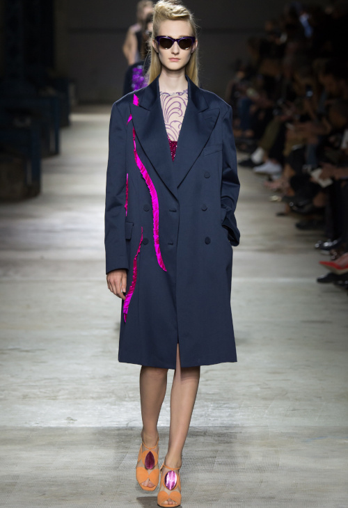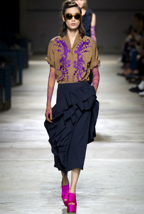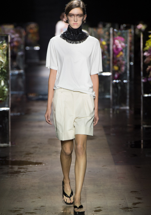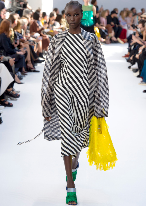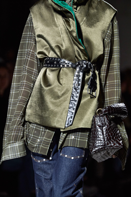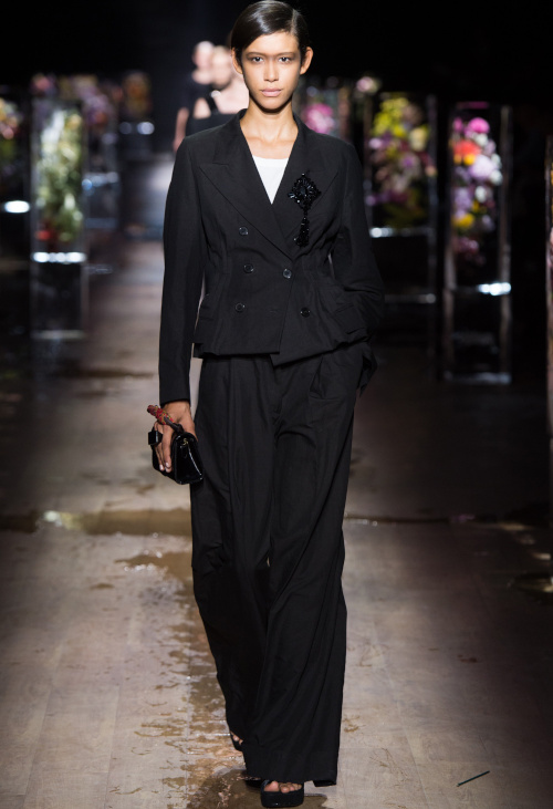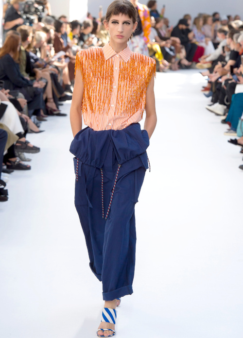 Désembourgeoiser le bermuda via une paire de tongs noires (P/E 2017). Gommer l'excentricité d'un total look imprimé au creux d'un long caban bleu marine (A/H 2019). Marier carreaux kaki, vert amande satiné et toile de jean brut (A/H 2019). Ceinturer un sage pull col rond un peu grand sur une jupe crayon glitter (A/H 2019). Réhausser les motifs noir et blanc via une touche de jaune scintillant (P/E 2019). Électriser une tenue bleu nuit au contact d'un zeste de rose fuschia (P/E 2016). Opter pour un costume dessinant la taille et floutant la jambe (P/E 2016, P/E 2017). Déjouer le sérieux d'une chemise oxford en la glissant dans une jupe fleurie asymétrique subtilement translucide (cela fonctionne également si ladite jupe n'est pas transparente) (P/E 2019). Associer bleu cobalt, rayures verticales orange brique et touche d'orange satiné (P/E 2019). Télescoper la dimension baroque d'une veste courte brodée avec la casualness du duo tee-shirt/jean large semi-taille haute (P/E 2017). Réchauffer le décolleté plongeant de ses slip dresses par le biais d'une chemise blanche à plastron (A/H 2016). Associer jaune, caramel, touches de noir et pointes de marron (P/E 2017). Assouplir l'élégance d'une jupe midi en lui mariant un ample bomber (P/E 2017). Mixer rouge, violet et caramel (P/E 2016). Chiciser une robe sweat en y glissant une chemise blanche manches longues (P/E 2017). Décliner l'esprit smoking en optant pour une robe chemise plastron glissée sous une veste noire à revers satinés (A/H 2016).