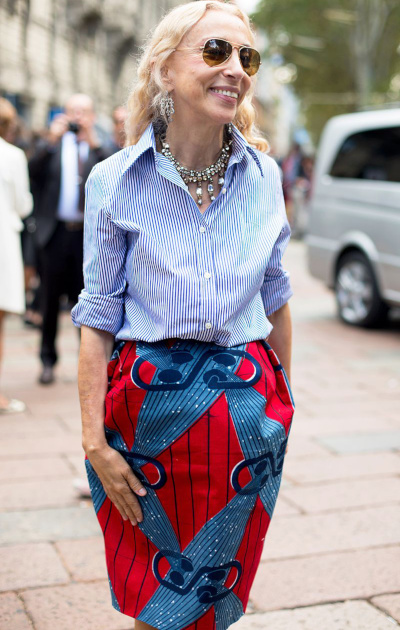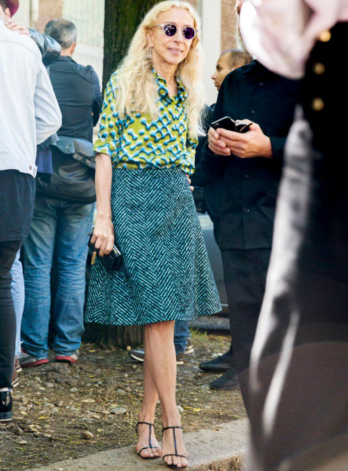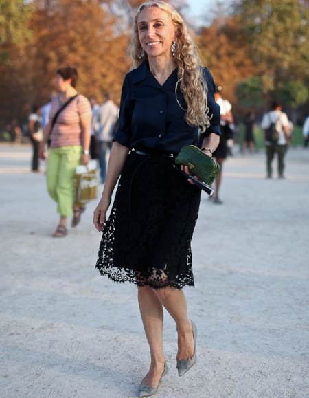 Très belle femme, solaire, et à l'approche stylistique bien à elle, italienne. Un style que télescope celui, plus arty, de sa sur jumelle Carla Sozzani, fondatrice du célèbre Corso Como, qui peut également être analysé comme un bon style :)