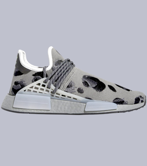 Les effets réfléchissants des lacets de la NMD Hu Animal Print ne parviennent pas à pallier la morosité induite par le moucheté gris/noir de la tige. Décliné de manière trop sobre, l'imprimé léopard perd ici la joyeuse fantaisie qui avait fait le succès des précédentes versions du modèle NMD Hu (voir ici, ici et là).
